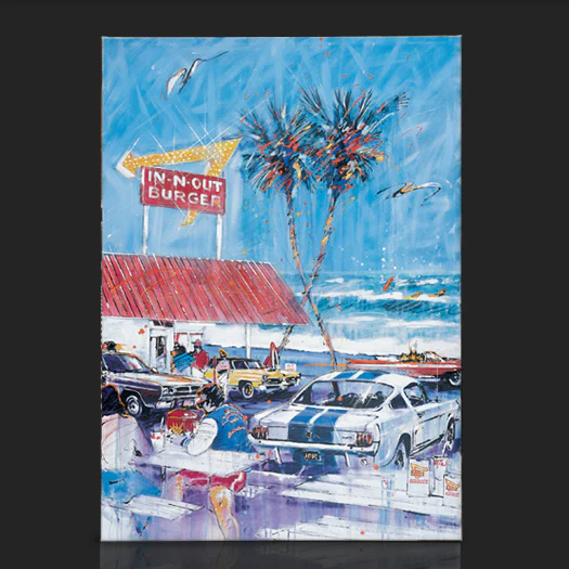 This print is an iconic depiction of the California beach lifestyle. Created by artist Michael Bryan in 1992, its classic feel stands the test of time. This item is available in either a simple canvas gallery wrap or elegant framed canvas.